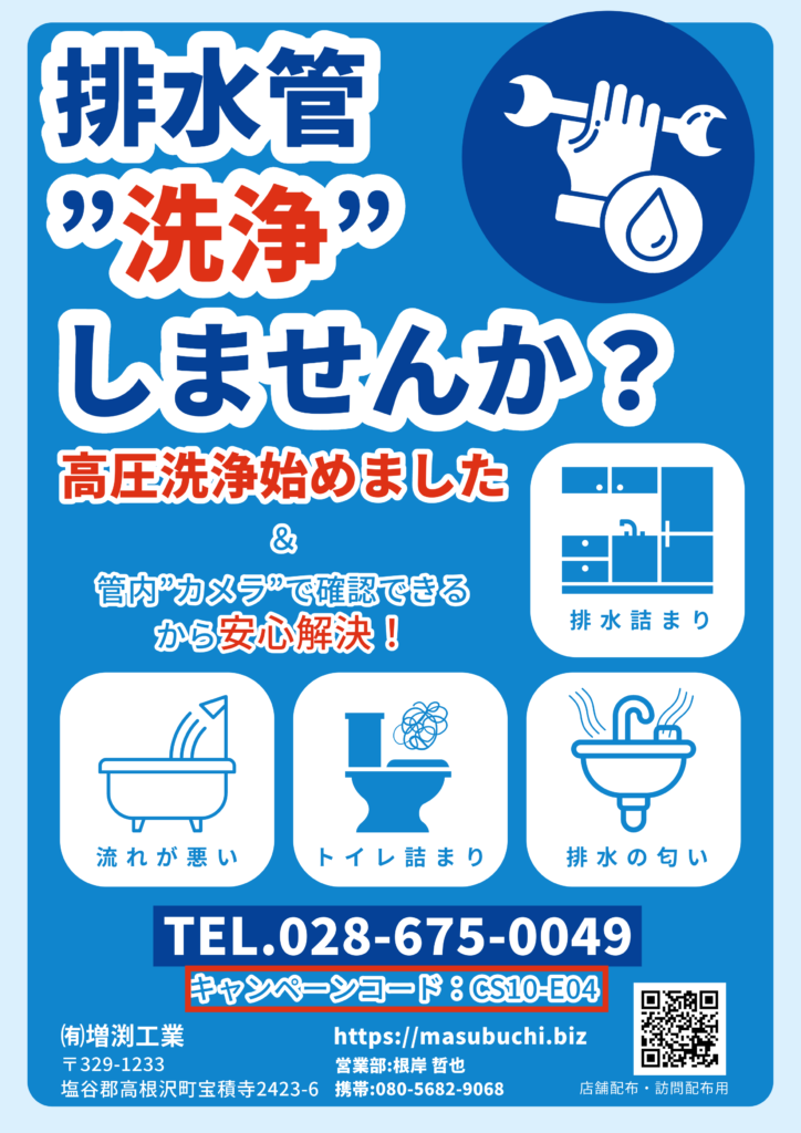 当社では、「高圧洗浄」による排水管清掃を始めました。排水管清掃のために高圧洗浄機や空圧洗浄機などの専用機材と、国家資格を持つプロの知識と技術で排水管の問題を解決いたします。